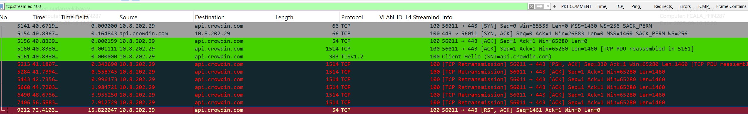 - When checking through tcpdump we clearly see that the TCP session is established, but the TLS connection is dropped from api.crowdin.com’s side