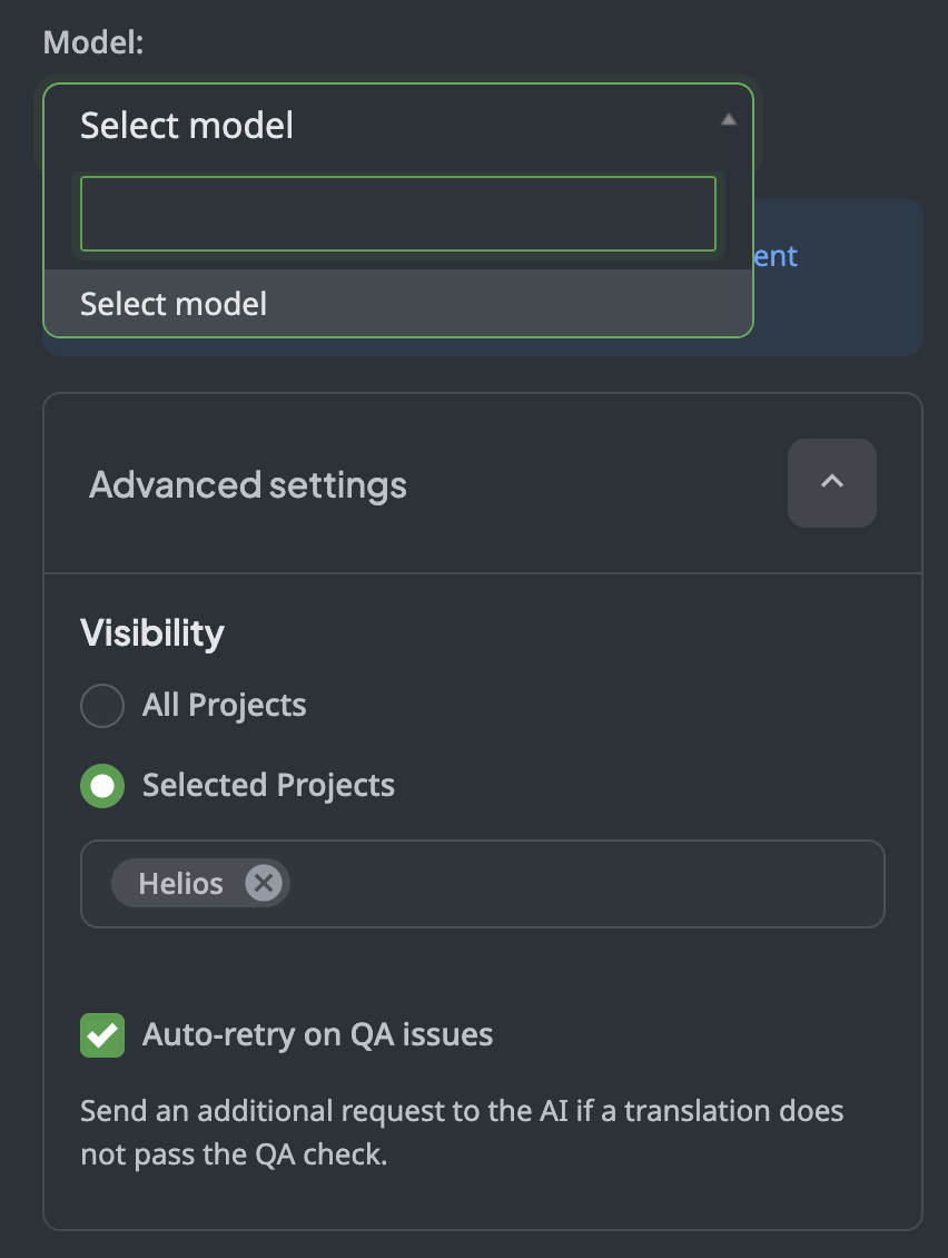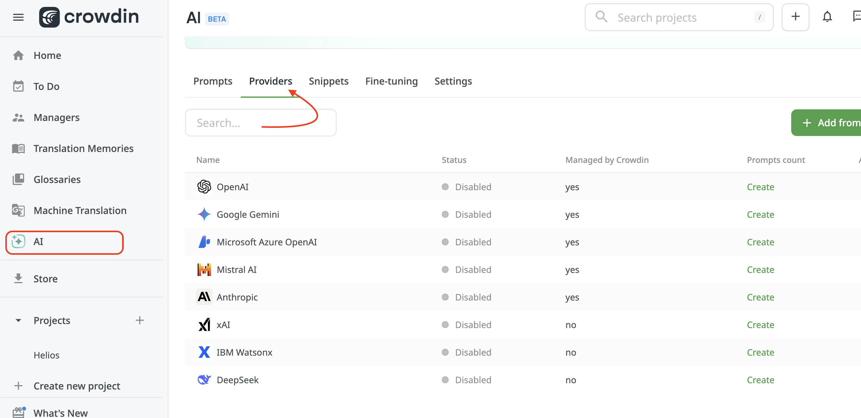 Please, find our detailed guide on configuring AI Providers here: Crowdin AI | Crowdin Docs